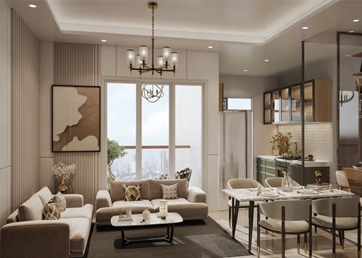 The project offers thoughtfully designed 2 BHK and 3 BHK apartments with spacious layouts, panoramic views, and elegant interiors suited for modern living.
