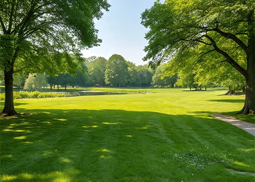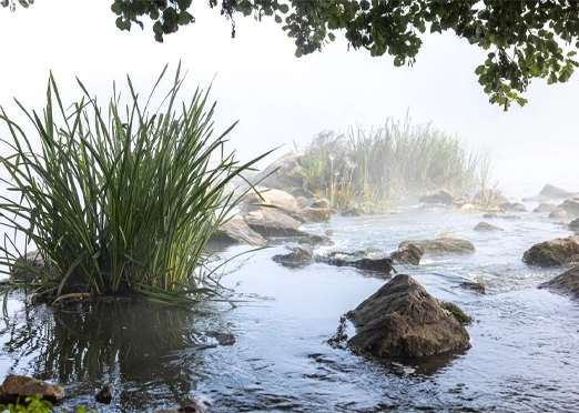 Natural water pond and landscaped gardens